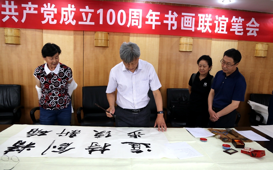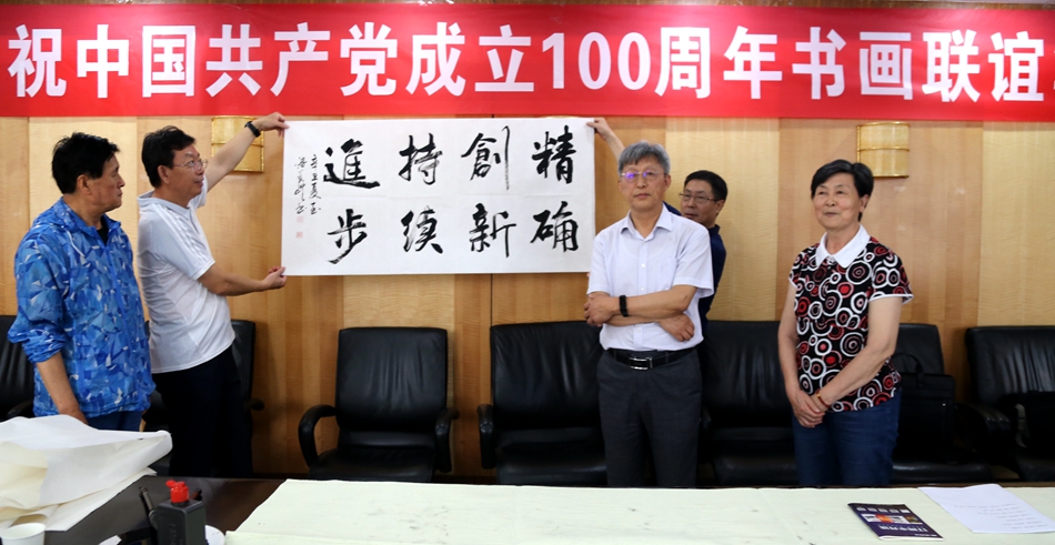 为庆祝中国共产党成立100周年,回顾党的奋斗历程,歌颂美好新时代,助力公司企业文化建设。6月24日,芜湖徽腾教育科技有限公司、烟台市老年书画研究会、烟台市老干部志愿者协会共同举办“庆祝中国共产党成立100周年联谊书画笔会”。本次活动共有18位县处级退休老干部书画家参加。